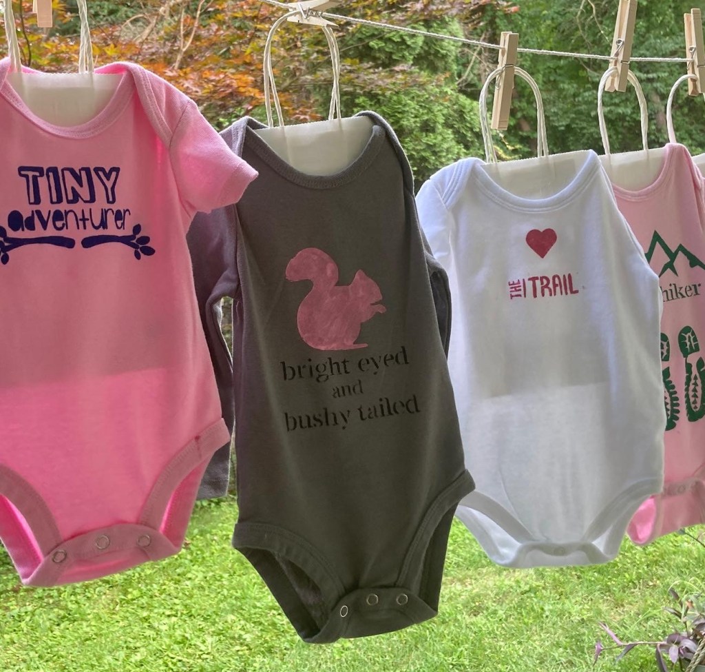 And then I learned about Cricut Stencil Vinyl, and let me tell you this is the thing. This is what you want if you want to guarantee it looks good. Unlike other stencils, this is a sticker that you can press right on to the onesie, which makes sure that the edges are pretty close to perfect. And using the Cricut Design Space you can design either use the designs other people have made or design your own. The result is a bunch of stencils that you know the parents will like.